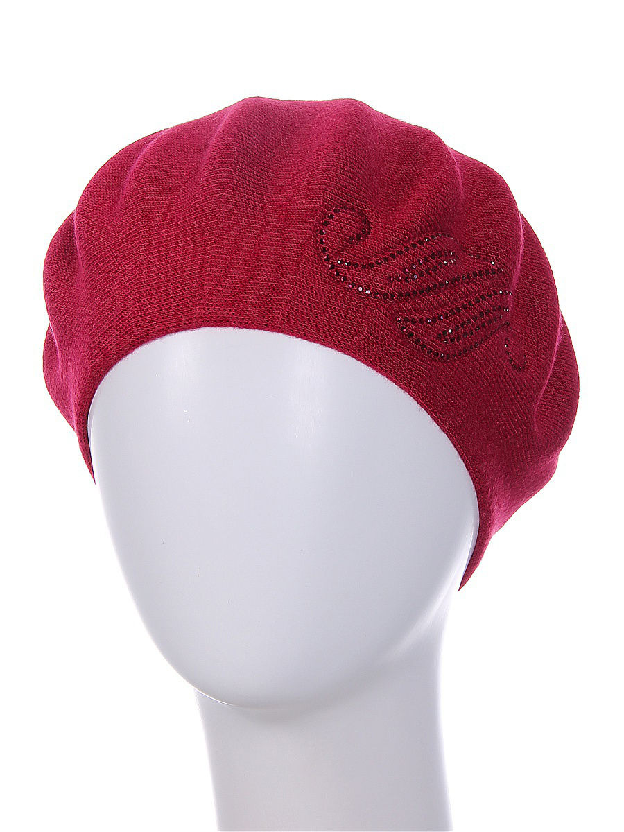 Элегантный двойной берет классической формы из нежной высококачественной пряжи. Декорирован аппликацией из страз и дополнен отстрочкой по контуру рисунка и фирменной фурнитурой. Фабрика Junberg, Россия.