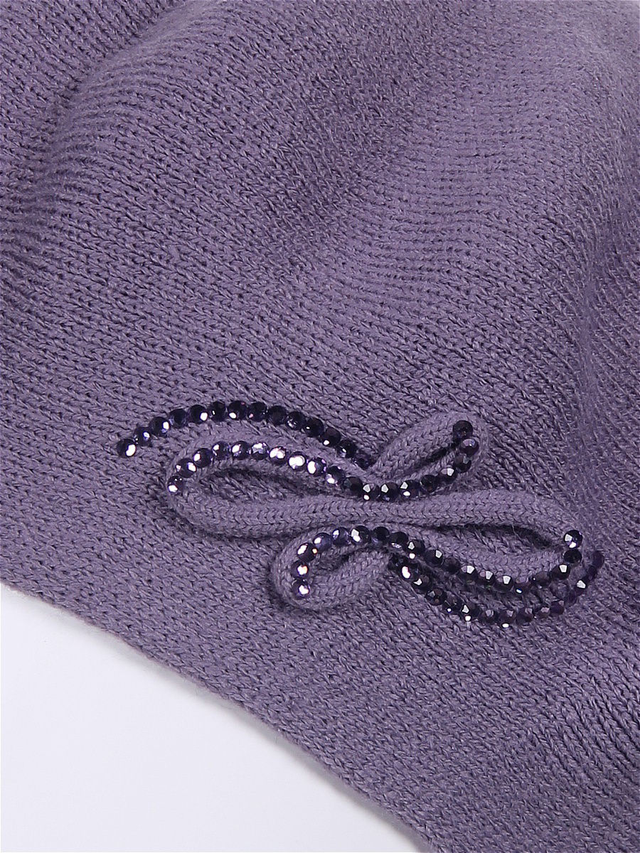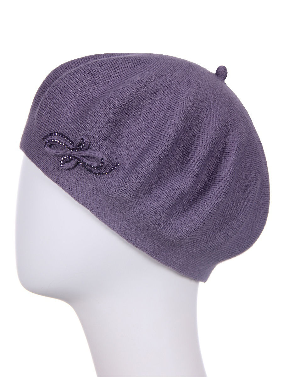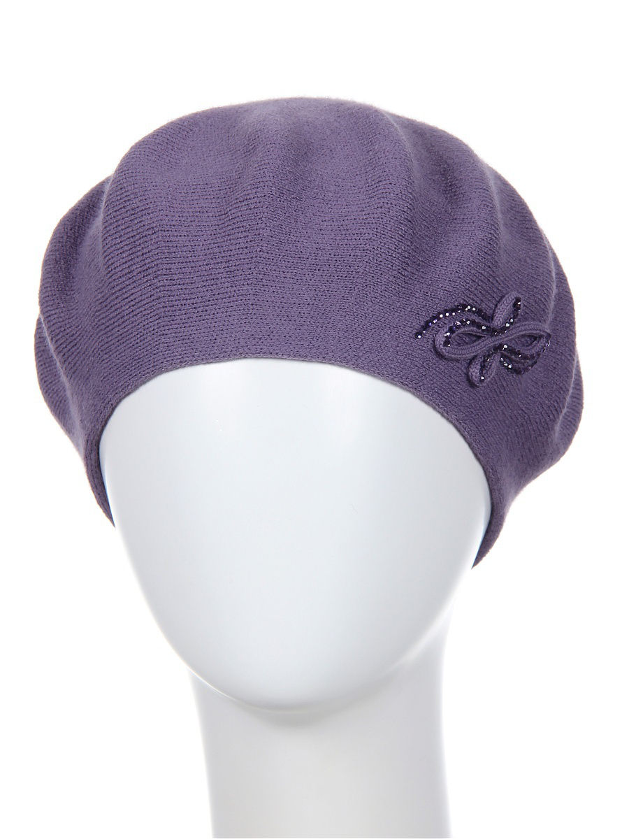 Элегантный классический берет из высококачественного объемного акрила с внутренним подворотом. Декорирован элегантным украшением ручной работы, украшен стразами. Фабрика Junberg, Россия.