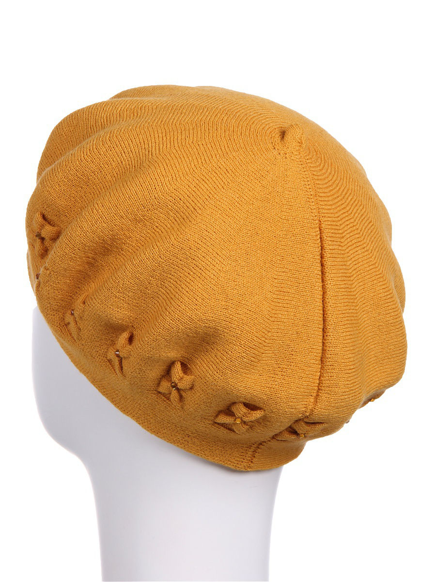 Элегантный классический берет из высококачественного объемного акрила с внутренним подворотом. Декорирован вывязанными элементами в виде бантиков и украшен стразами. Фабрика Junberg, Россия.