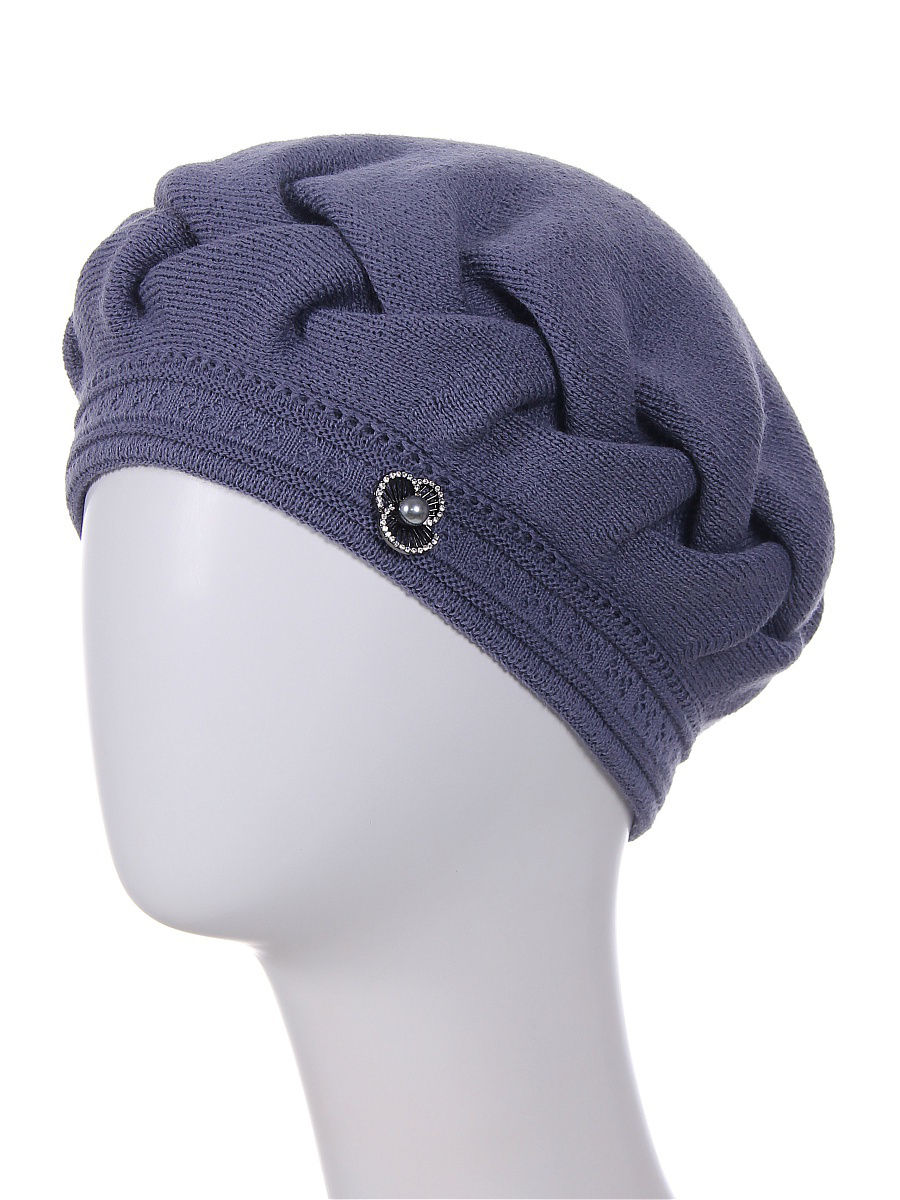 Элегантный теплый двойной берет из высококачественного объемного акрила. Имеет оригинальную форму с ручной сборкой по периметру в виде косы. Декорирован элегантным украшением в виде небольшой броши. Фабрика Junberg, Россия.