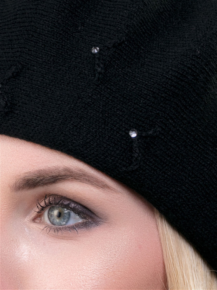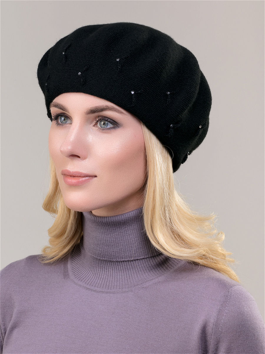 Элегантный теплый двойной берет классической формы из высококачественного объемного акрила. Внутри имеет двойной подворот, который дополнительно утепляет область лба и ушей. Декорирован оригинальными вывязанными элементами и украшен стразами. Рекомендуется для холодной зимы. Фабрика Junberg, Россия.