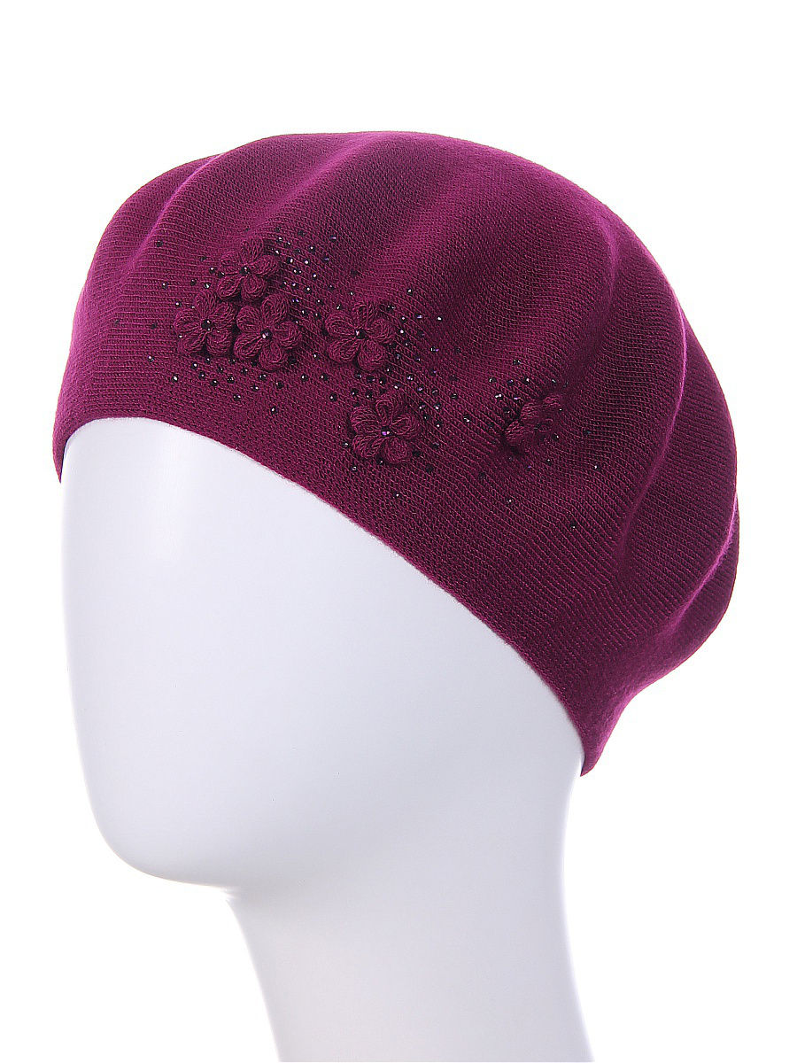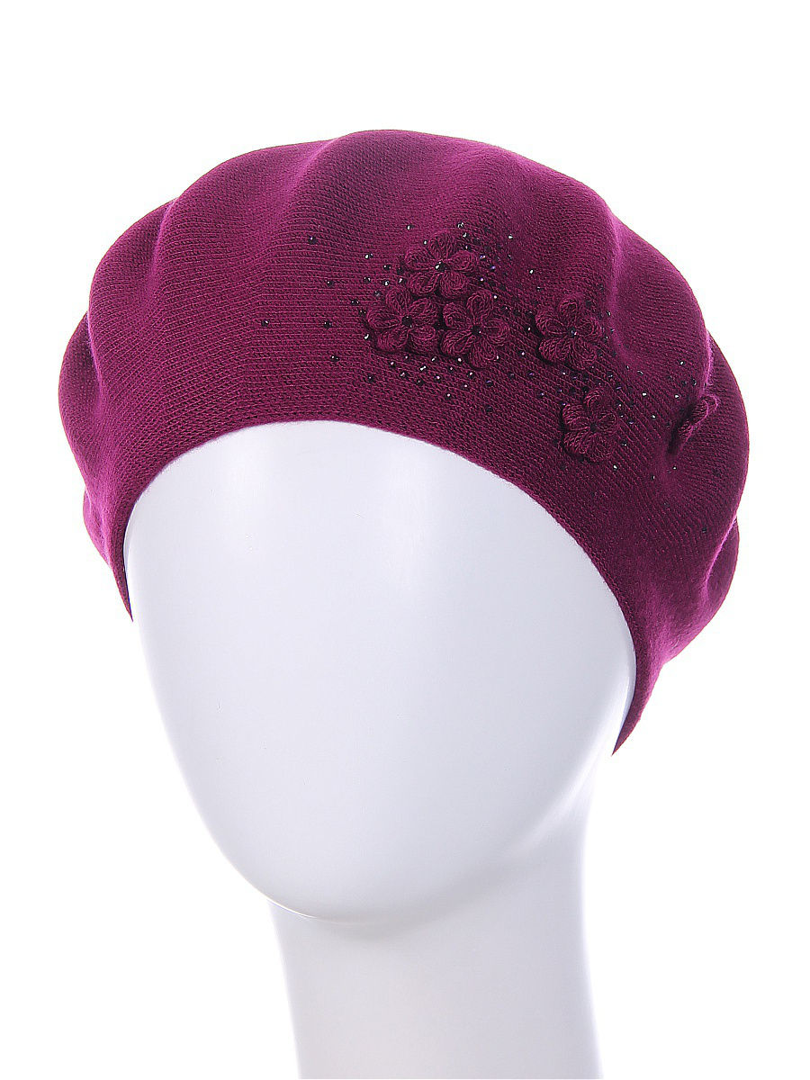 Элегантный двойной берет классической формы из мягкой высококачественной пряжи. Декорирован аппликацией из страз и элементами ручной работы.