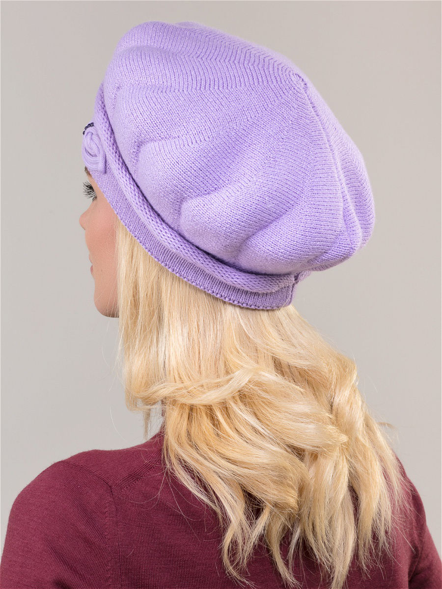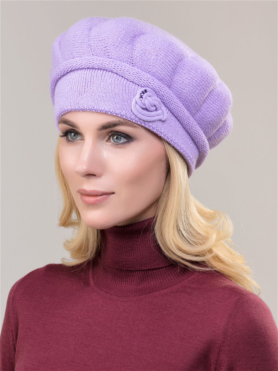 Элегантный берет одинарной или двойной вязки (на выбор) из высококачественного объемного акрила. Имеет оригинальную форму и декорирован элегантным украшением ручной работы с дополнением из страз и фирменной фурнитуры. Фабрика Junberg, Россия.