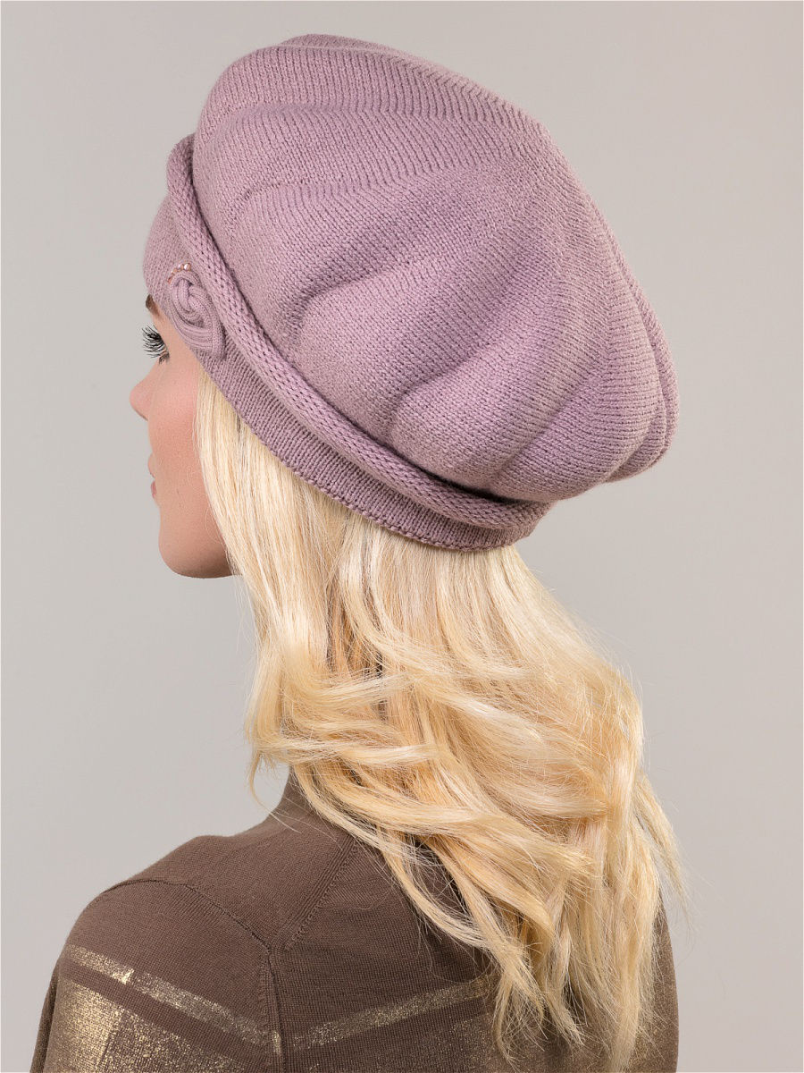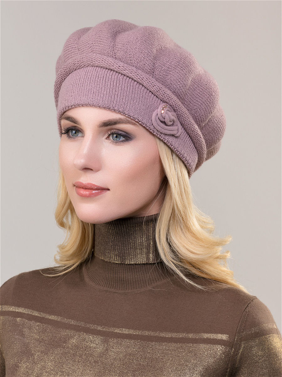 Элегантный берет одинарной или двойной вязки (на выбор) из высококачественного объемного акрила. Имеет оригинальную форму и декорирован элегантным украшением ручной работы с дополнением из страз и фирменной фурнитуры. Фабрика Junberg, Россия.