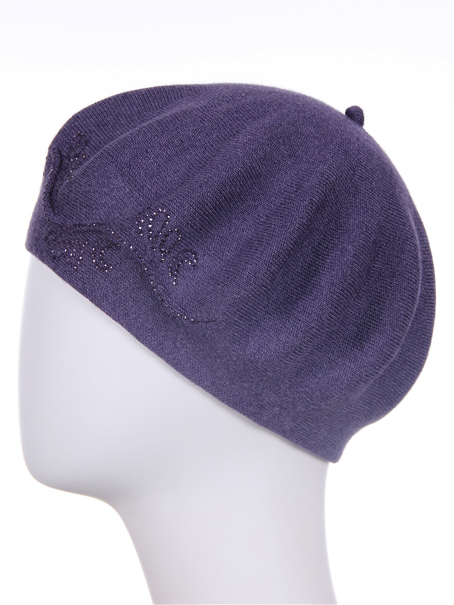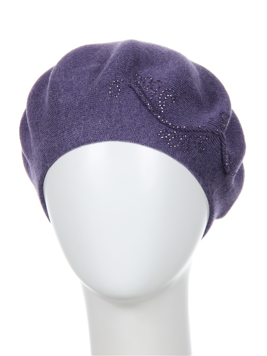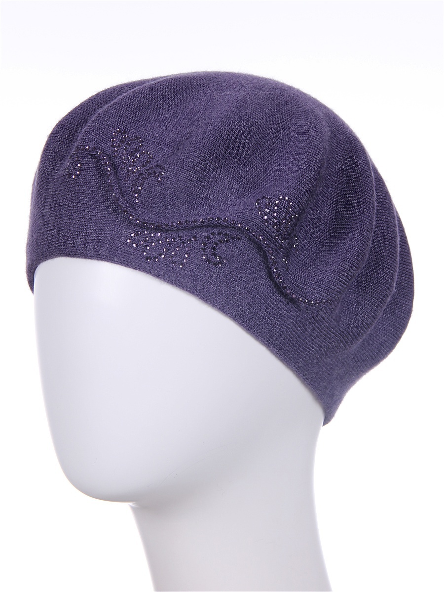 Элегантный берет классической формы из нежной итальянской пряжи с внутренним подворотом. Декорирован отстроченной изогнутой линией, дополненной композицией из страз. Фабрика Junberg, Россия.
