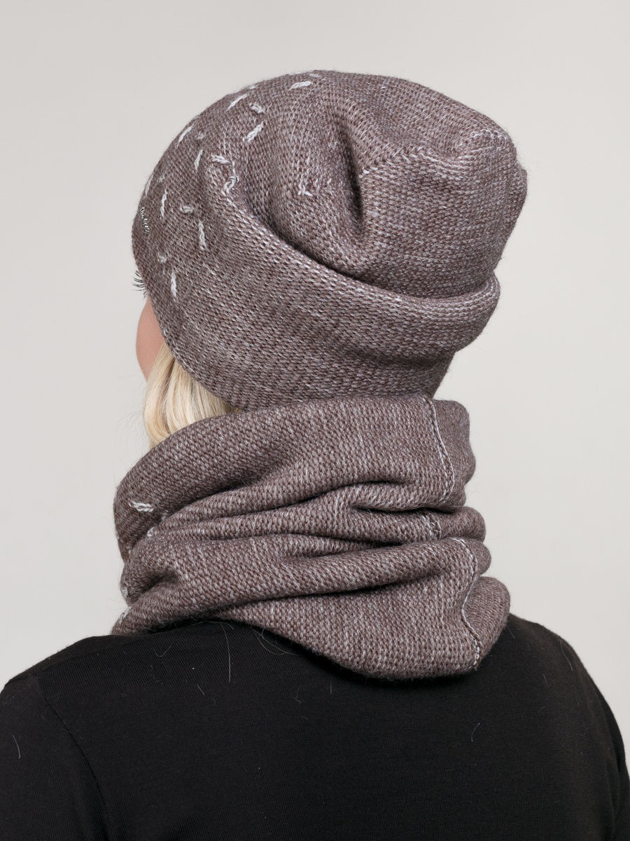 Модная шапка из мягкой итальянской пряжи в комплекте со снудом. Декорирована стильной металлической биркой с логотипом Фабрики Junberg.