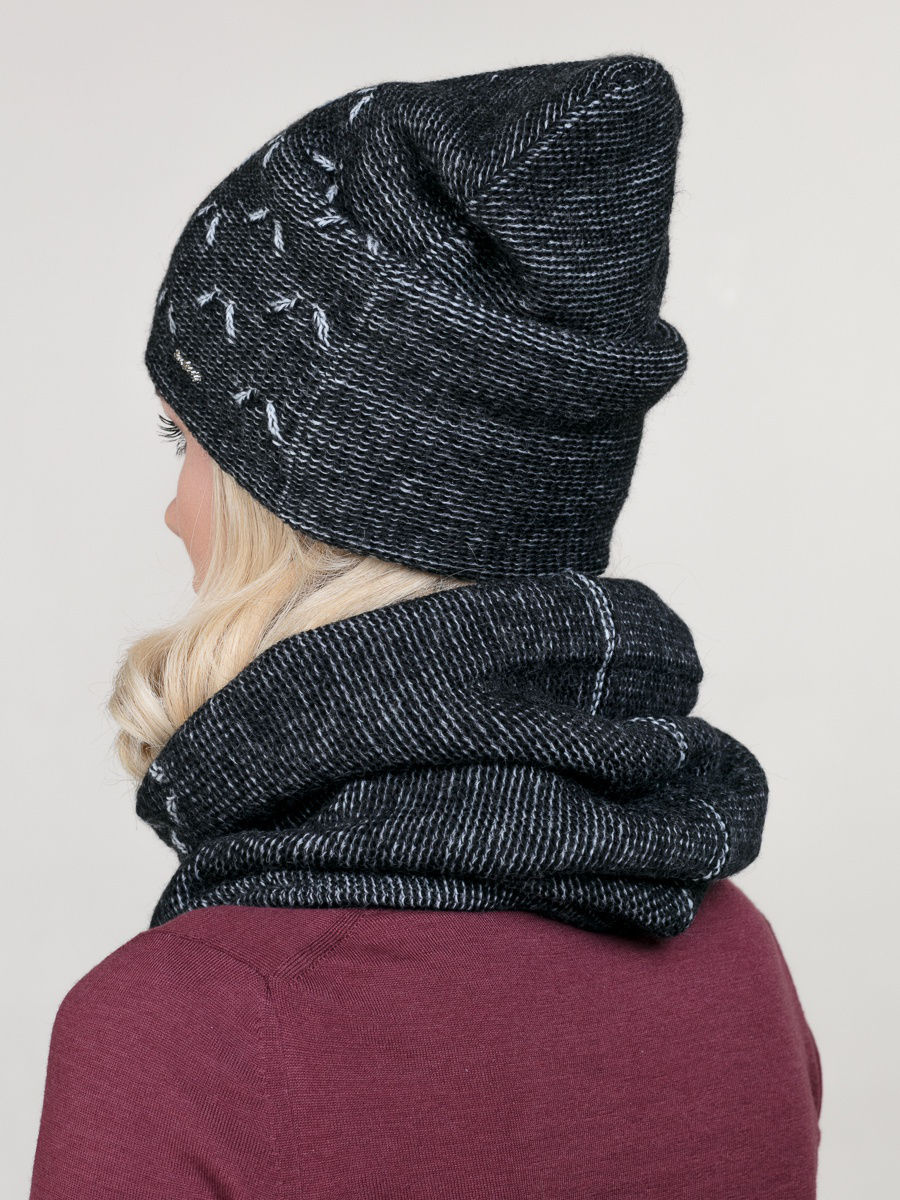 Модная шапка из мягкой итальянской пряжи в комплекте со снудом. Декорирована стильной металлической биркой с логотипом Фабрики Junberg.