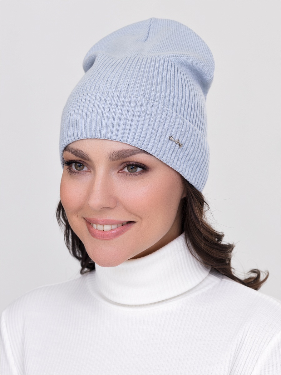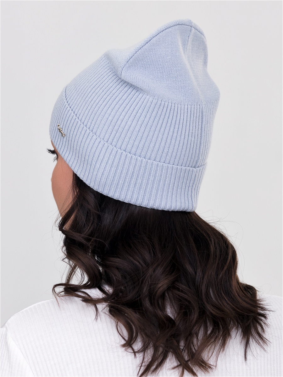 Одинарная современная шапка с отворотом из нежной пряжи. Декорирована фирменной фурнитурой.. Фабрика Junberg, Россия.