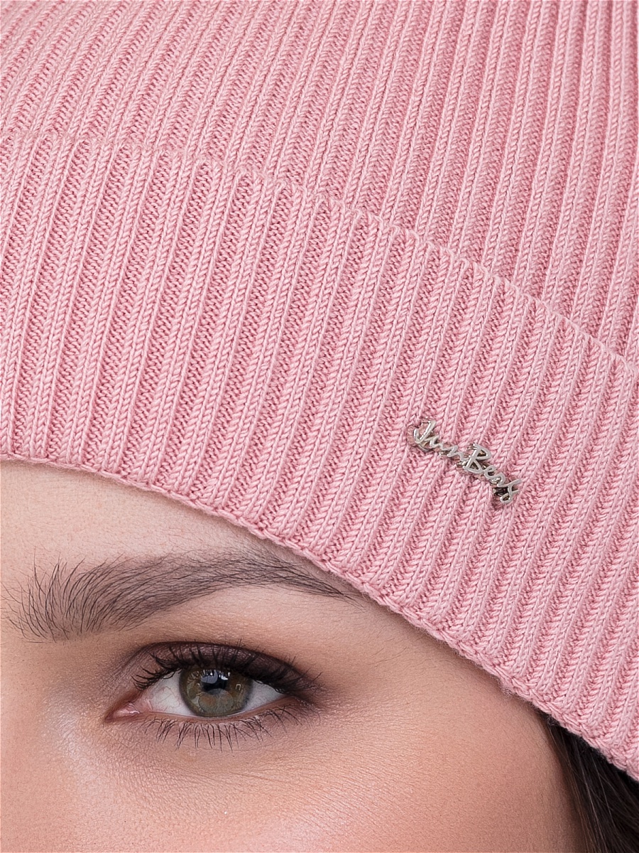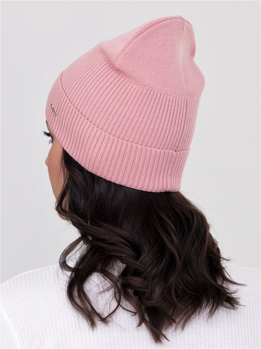 Одинарная современная шапка с отворотом из нежной пряжи. Декорирована фирменной фурнитурой.. Фабрика Junberg, Россия.