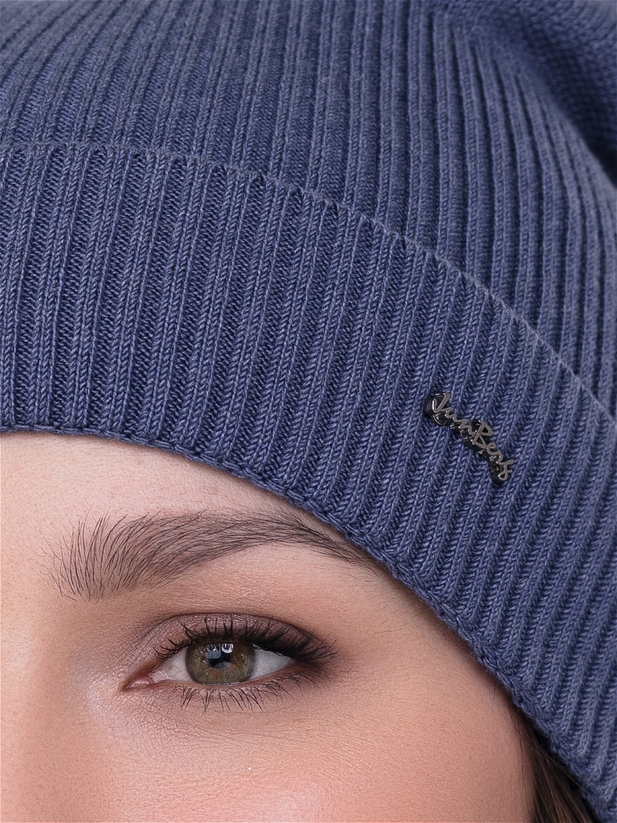 Одинарная современная шапка с отворотом из нежной пряжи. Декорирована фирменной фурнитурой.. Фабрика Junberg, Россия.
