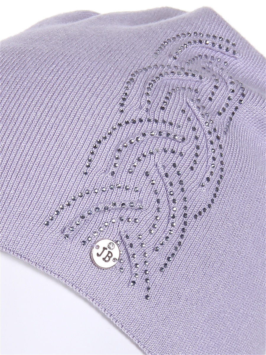 Одинарная шапка из мягкой итальянской пряжи. Декорирована композицией из страз в виде косы и отстрочкой внутри рисунка. Фабрика Junberg, Россия.