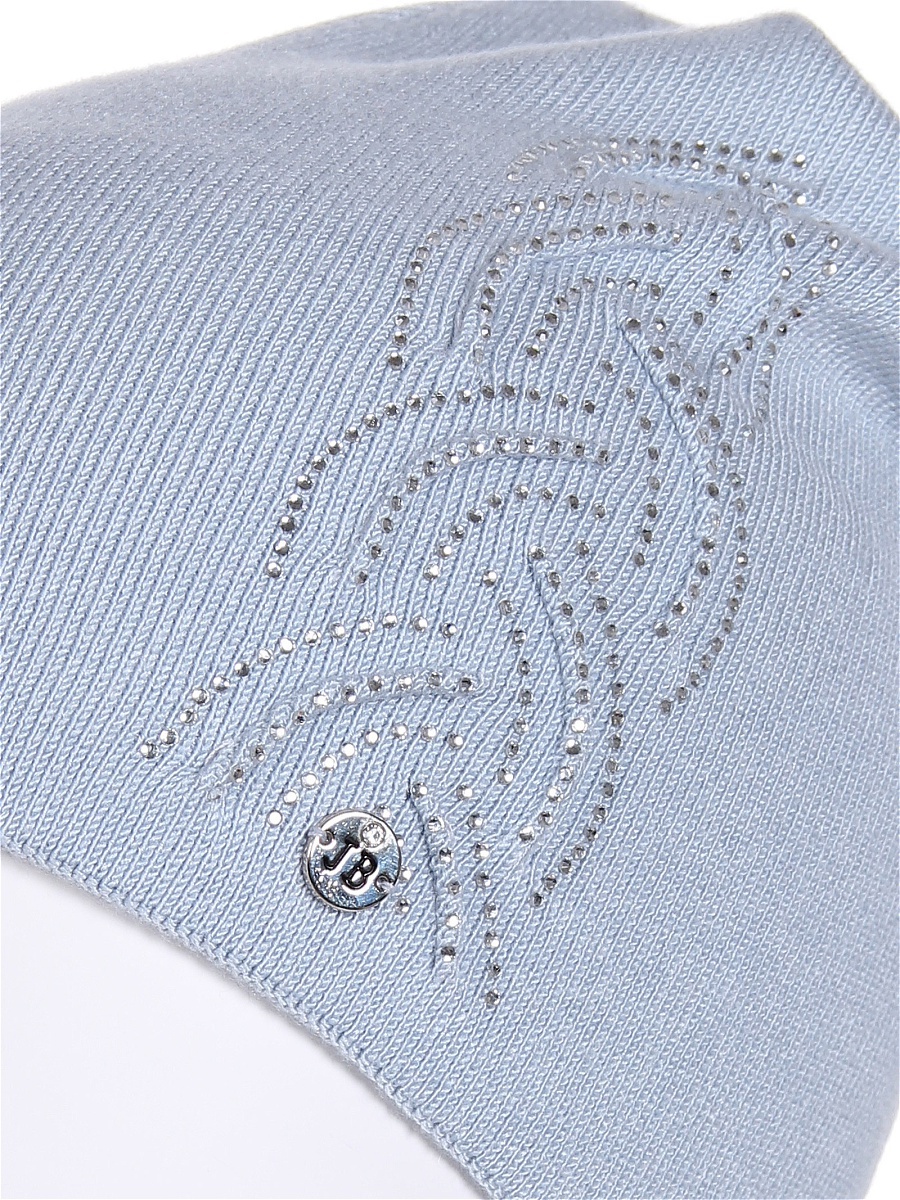 Одинарная шапка из мягкой итальянской пряжи. Декорирована композицией из страз в виде косы и отстрочкой внутри рисунка. Фабрика Junberg, Россия.