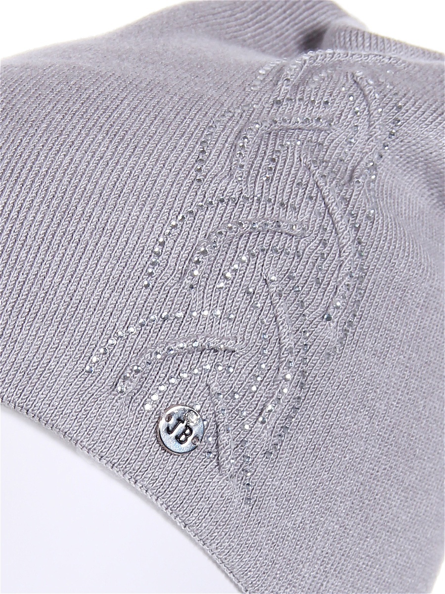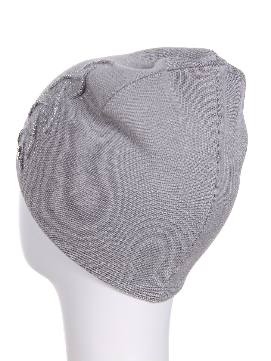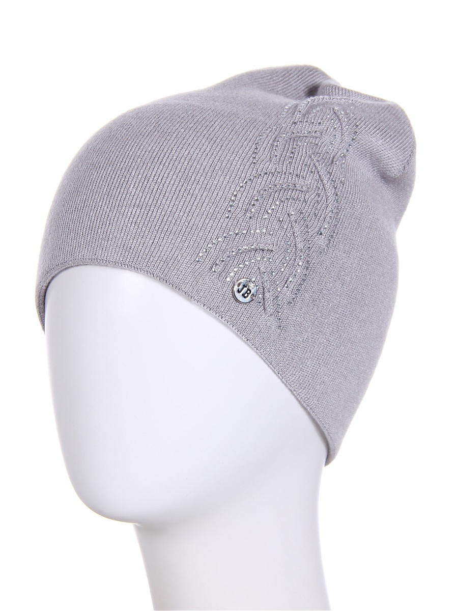 Одинарная шапка из мягкой итальянской пряжи. Декорирована композицией из страз в виде косы и отстрочкой внутри рисунка. Фабрика Junberg, Россия.