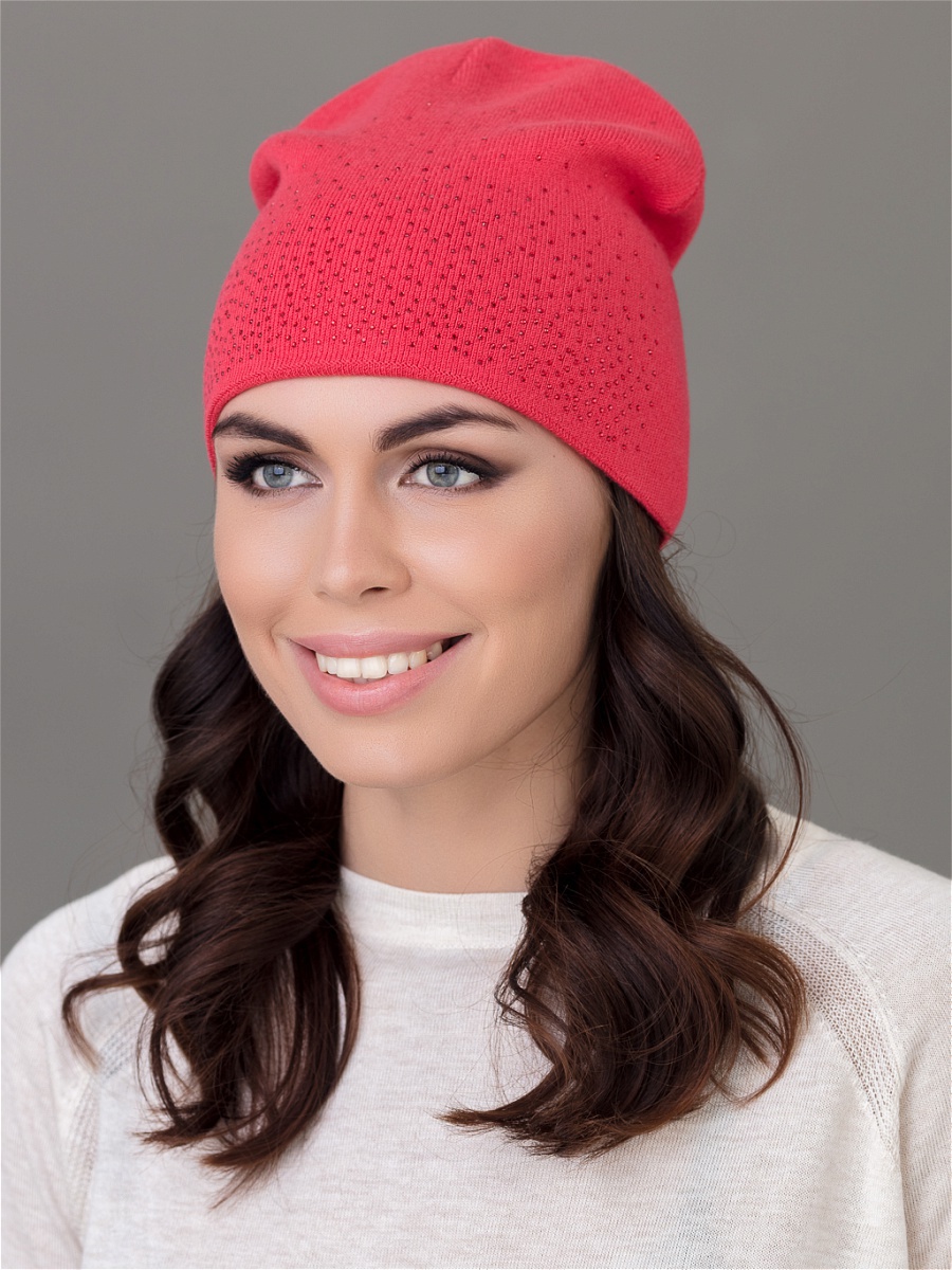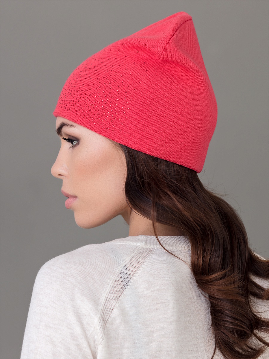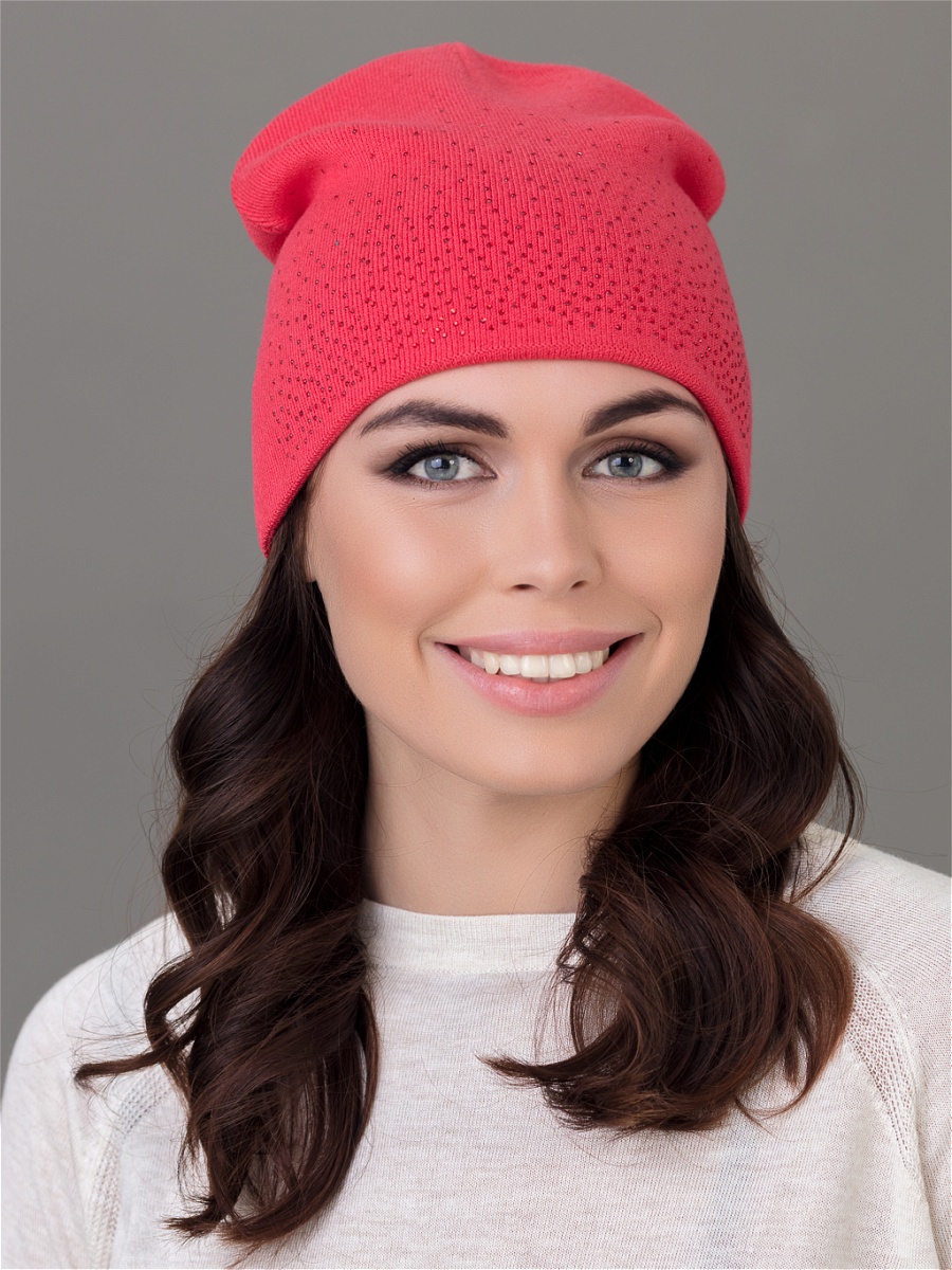 Одинарная шапка из мягкой итальянской пряжи с высоким внутренним подворотом . Декорирована россыпью из страз. Фабрика Junberg, Россия.
