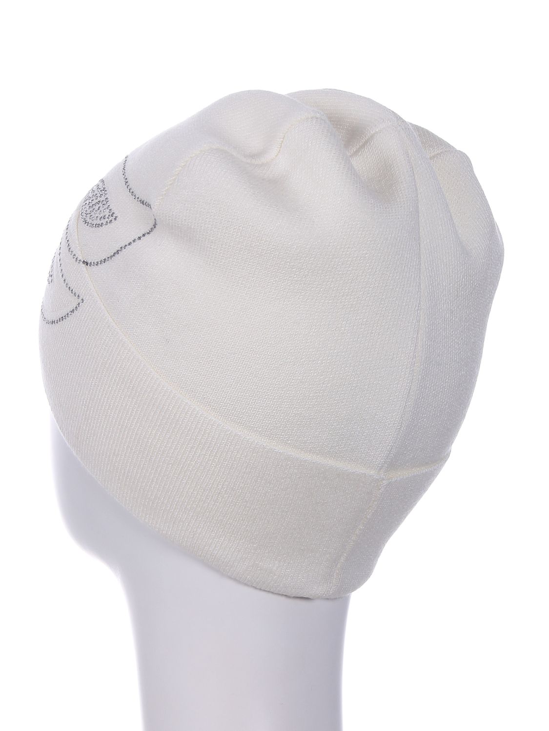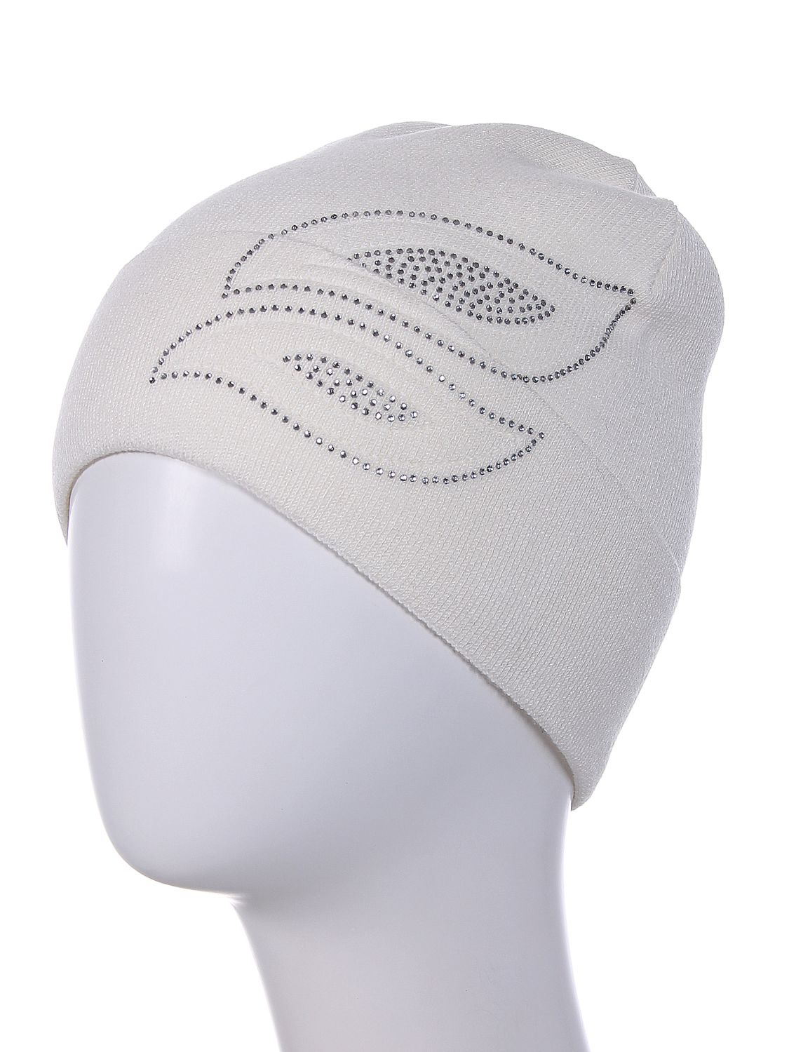 Одинарная шапка из нежной пряжи с добавлением кашемира. Декорирована элегантным узором в виде ветки с отстроченными элементами, дополненный композицией из страз в виде лепестков. Фабрика Junberg, Россия.